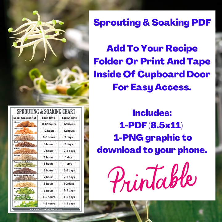 Sprouting And Soaking Chart and Sprouting Guide (PDF Printables and PNG)